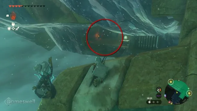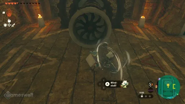 Все просто. Запрыгните на один из батутов, расположенных рядом с Храмом Ветра, и катапультируйтесь на самую высокую крышу центральной части Храма Ветра. Там вы найдете люк в крыше, который можно с трудом открыть с помощью Ультраруки.