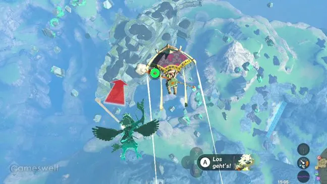 Если вы последовали нашей рекомендации и сначала сделали храм ветра, то можете положиться на силу ветра Тулина. Это, вместе с зельями выносливости, должно дать вам достаточно импульса для длительного плавания в воздухе. Итак, позвольте себе выстрелить в небо из башни на Зоранском нагорье и поверните прямо на восток. Если вы продержитесь достаточно долго на парасейле и будете использовать силу ветра Тулина для тяги вперед, то легко долетите до этого острова.
