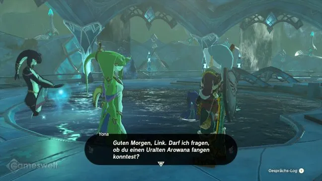 Прежде чем отправиться в страну небесных рыб и водного моста, необходимо отремонтировать доспехи Зоры. С помощью этой брони можно плавать по водопадам, что очень удобно для передвижения.