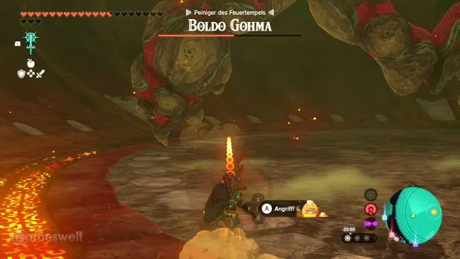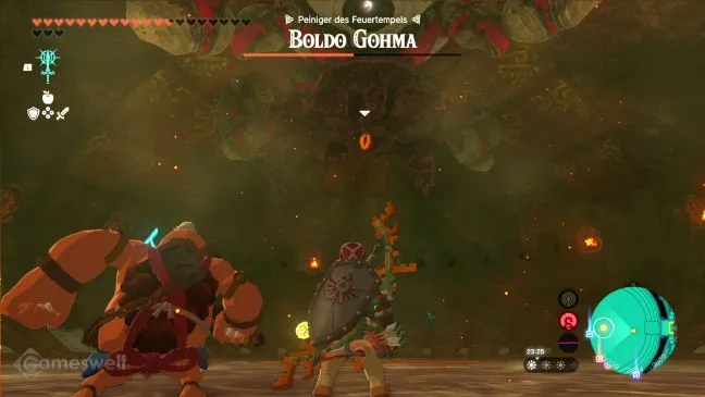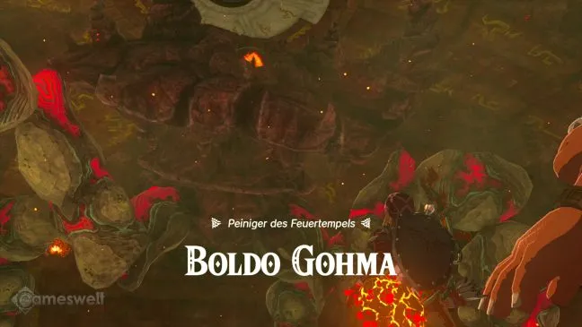 Монстр Гохма вообще является старым знакомым в серии игр Zelda, но никогда еще ни одно из паукообразных существ не существовало в таком виде. Болдо-Гохма стоит на каменных ногах. Точнее, на ногах из красного камня. Пригодилась сила огня Юнобо.