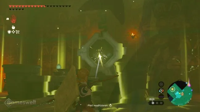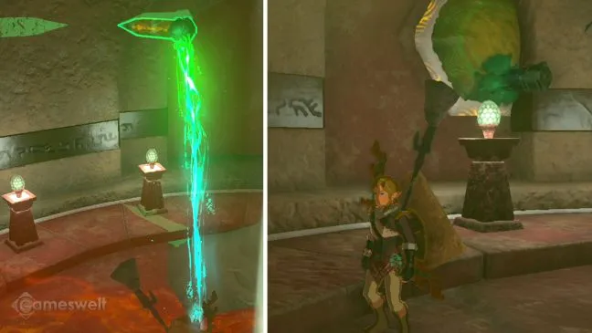 Возьмите лежащий на полу столб Sonau и воткните его в стену. Причем сделайте это именно тогда, когда будет видна пластина-отражатель. Это остановит вращение внешней стены. Для выбора нужного момента требуется небольшая сноровка.