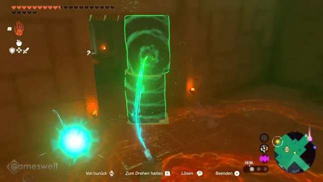 В следующей комнате уже поджидает следующая угроза: по коридору сзади катятся горящие шары. Используйте реверс времени, чтобы следующая пуля покатилась назад, и следуйте за ней по коридору. В следующей комнате вы снова найдете ступенчатый переключатель, который не дает пулям катиться, и Риджу сможет последовать за ним.