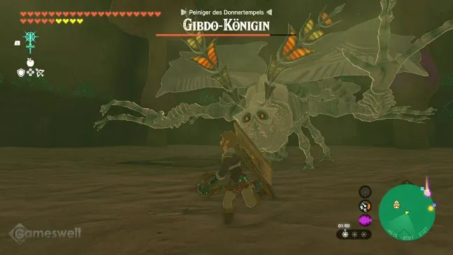 Без доспехов она становится белой и, следовательно, чувствительной к ударам мечом, копьем и т.п. Целевые атаки могут быть затруднены, поскольку, когда королева Гибдо бьется головой о землю, она может нанести Линку довольно большой урон. Поэтому по возможности держитесь позади нее и работайте по ее ногам. Однако еще лучше подготовить еще одну молниеносную атаку.