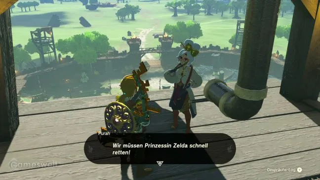 Теперь, когда вы освоили все четыре главных храма, вам следует вернуться на смотровую площадку. Поговорите с Пурой, которая стоит на своей смотровой башне. Она увидит в телескоп внезапно взошедшую луну, заметит Зельду на плавучем замке и отправит вас туда, чтобы спасти принцессу.