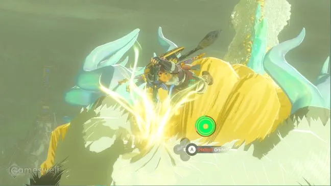 Мастер-меч застрял во лбу дракона. Подойдите и попытайтесь вытащить его. Это привлечет внимание дракона, который начнет яростно отбиваться. Вот тут-то и пригодится ваша выносливость. Удерживайте кнопку A, пока Линк держится за меч.