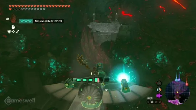 Возьмите часть оружия и на самолете преодолейте небольшое расстояние на север до моблина на другой стороне. Постарайтесь не упасть на землю внизу, потому что там вас встретят миазменный монстр и призрачный ганон. Бой, который будет стоить вам неоправданных ресурсов.