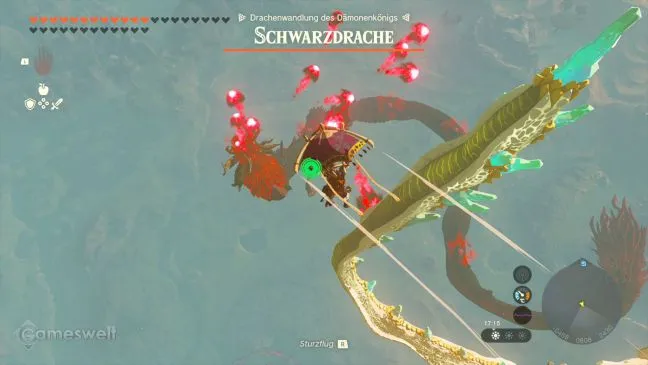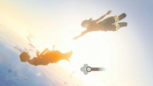 Вы должны следовать за Зельдой в пикировании, догнать ее и дотянуться до нее. Как только она появится перед Вами, Вы должны удерживать кнопку A до тех пор, пока Линк не схватит ее за руку.