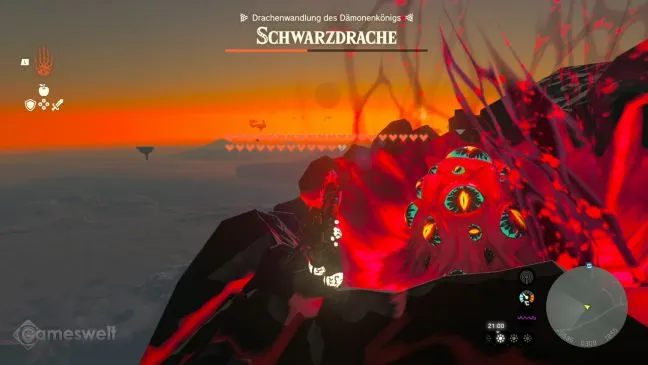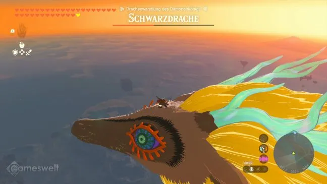 Выбравшись на поверхность, Линк застревает между зубами черного дракона. Так что надежда еще есть. Пока Линк пытается освободиться от зубов чудовища, белый дракон (т.е. преобразившаяся Зельда) подлетает и ловит Линка, когда тот спрыгивает с него. Сражение с черным драконом может начаться.
