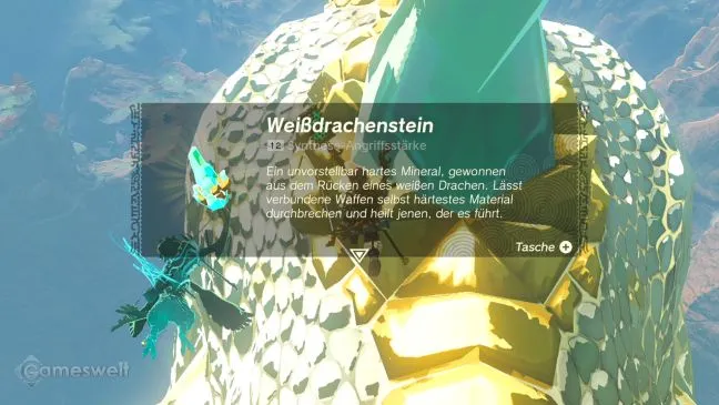 Вы должны достать эти детали из воздушного змея, выстрелив в них стрелой или ударив оружием ближнего боя. Они будут лететь по ветру и падать вниз (если не были прикреплены к воздушному змею заранее), поэтому нужно поспешить и собрать их в воздухе. Чтобы подняться обратно, можно использовать восходящие потоки вокруг воздушного змея. Единственное исключение - кристаллы со спины дракона, которые можно собрать, пробежав по его спине и подобрав их.