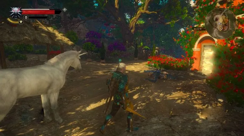 Продолжайте двигаться влево, пока не увидите стол для пикника и труп женщины. Посмотрите на последнее с активированным ведьминским чутьем и подумайте, хотите ли вы украсть со стола волшебную еду. Если вы это сделаете, вам придется сражаться с двумя медведями и медвежонком. Сядьте на своего единорога, вернитесь на последний перекресток и следуйте по оставшемуся пути слева, пока не достигнете дома.