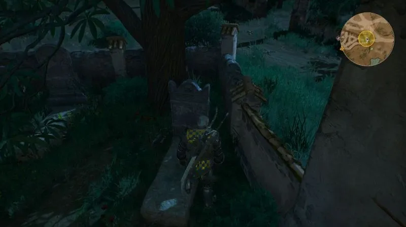 Выйдите из катакомб и идите к новому маркеру назначения на крайнем северо-востоке от указателя «Ворота Купера». Идите ко второму маркеру, где вы наткнетесь на запертые ворота. Поднимитесь по лестнице слева, развернитесь и перелезьте через ящики на крышу. Сразитесь со спорами ковчега, активируйте свое колдовское чувство и осмотрите отмеченное место на востоке. Возьмите карты и снова переберитесь на крышу, чтобы вернуться на другую сторону здания. Наконец, заберите свою награду у Ланцано. Вы также получите больше корон, если солжете ему во время последнего вопроса и скроете супружескую ссору.