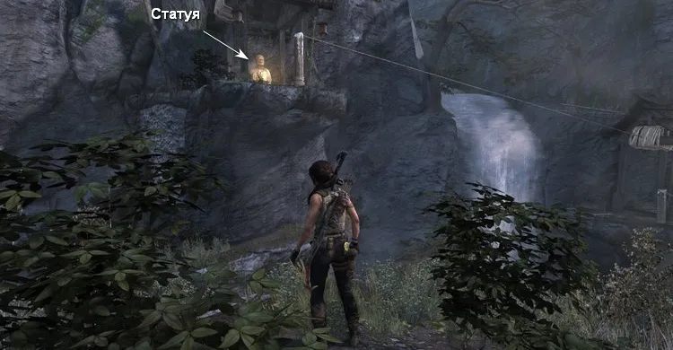 Статуя находится в области с водопадами и бандитами, на более высоком выступе слева. Попасть к статуе можно двумя путями: забраться по скале или пройти через пещеру, а затем над водопадом по бревну. Второй вариант подходит, если у вас нет Огнива или зажигалки.