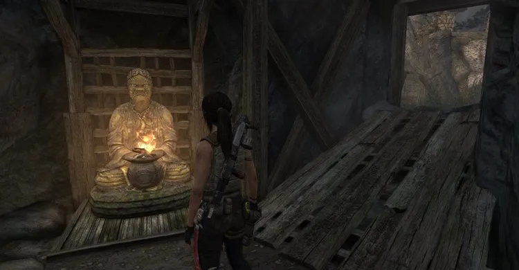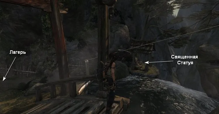 Находится к северо-западу от базового лагеря, где Лара нашла серьезно раненого Рота (Плато у деревни). Вы практически наткнетесь на нее прежде чем доберетесь до первого здания. Священные статуи требуют их освещения, поэтому сначала зажгите свой факел (награда: 10 опыта).