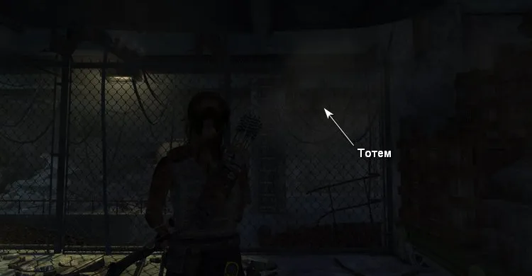 Убедитесь, что вы находитесь в коридоре с уничтоженными бандитами и повернитесь направо. Тотем можно найти за сеткой (награда: 150 опыта).