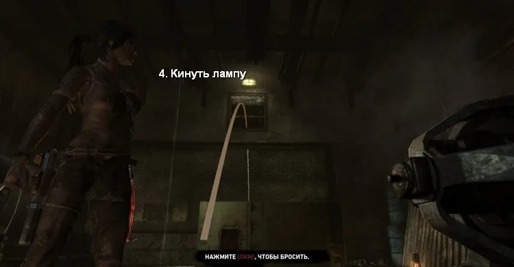 - Быстро перелезаем назад, чтобы не потерять сознание. Теперь подбираем одну переносную лампу и кидаем её в комнату с газом. Взрыв разобьёт все стекла и ранит появившегося сектанта.
