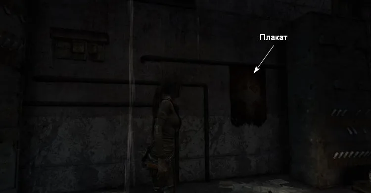 С правой стороны увидим нарисованные стрелы на стене, указывающие на дыру.