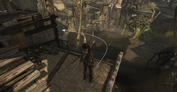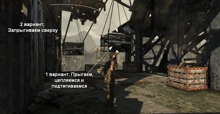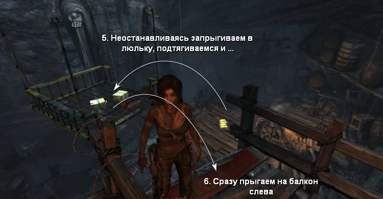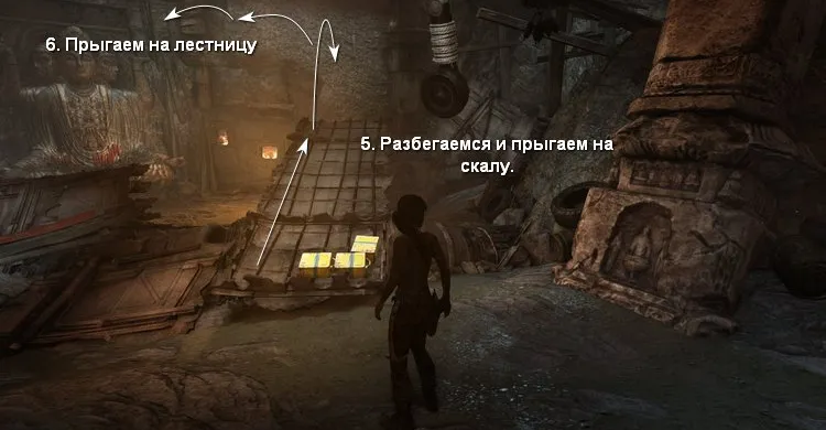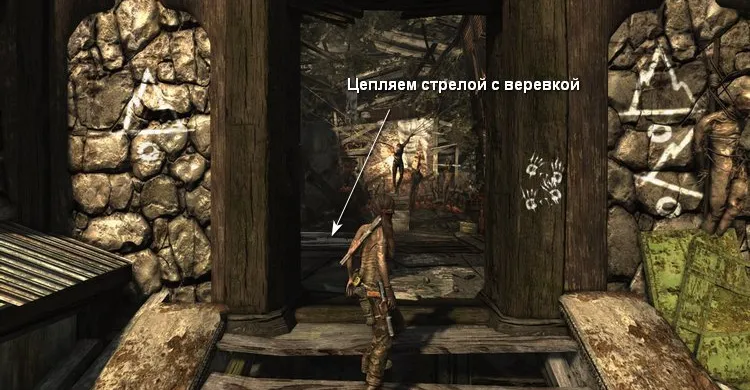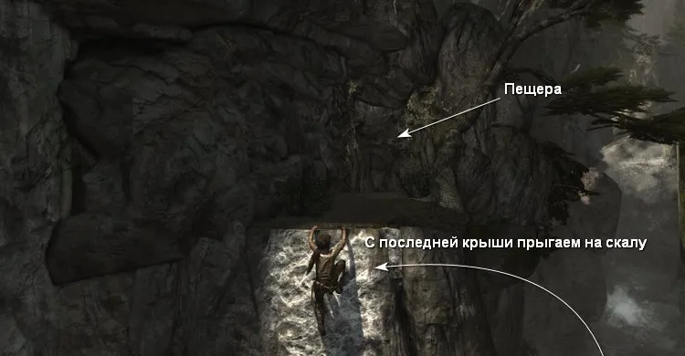 Затем прыгаем по крышам, чтобы добраться до деревянного выступа и пройти к пещере.
