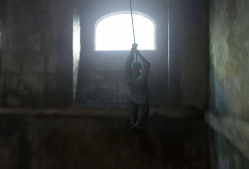 Откройте единственную дверь камеры и спрыгните вниз в темноту. Зацепитесь за балку над вами и спуститесь вниз. Спустившись вниз, вы должны вовремя спрыгнуть с пандуса, чтобы избежать падения в пропасть. Прыгните на решетку и заберитесь наверх.