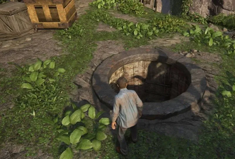 Здесь находится первое сокровище во всей игре. Найдите колодец и опуститесь вниз. Это кулон в виде кошки из Панамы. Он расположен в туннеле на дне колодца. Собрав сокровища, поднимитесь обратно.