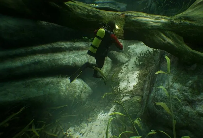 Пора продолжать погружение. Вернитесь в контейнер. Откройте дверь в конце контейнера и заплывите внутрь. Вы ищете несколько ящиков. Двое, похоже, отсутствуют. Натан хочет сразу же отправиться на их поиски, вопреки совету своего коллеги.
