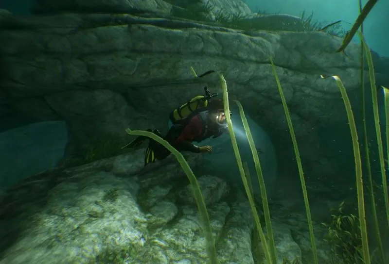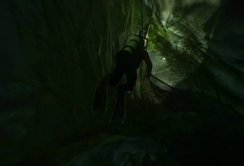 Проверьте его, и вы обнаружите жемчужину Чирики – акулу. Продолжайте нырять в пещеры, и вы снова окажетесь на открытом пространстве. Там вы обнаружите искомое затонувшее судно и старый ржавый контейнер. Когда контейнер окажется перед вами, плывите от него вправо.