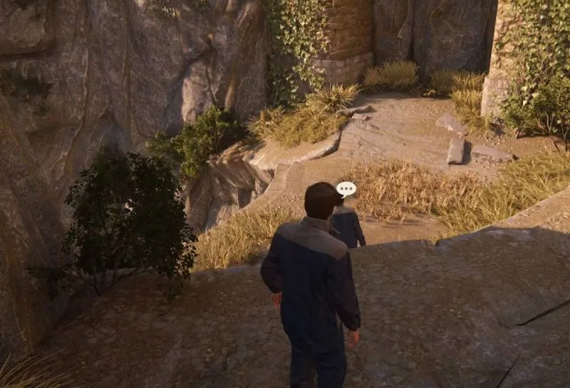 Как только вы сможете контролировать Натана, вы должны следовать за Сэмом. Бегите вниз по склону, пока не пройдете мимо двух деревьев. Пробегите через них и вы достигнете обрыва. Перед самым падением вниз вы найдете сосуд с водой Могола, спрятанный в куче травы.