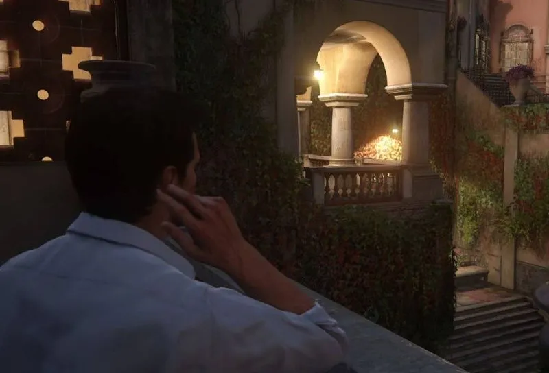 Чтобы достать сокровища, нужно прыгнуть на балкон. Однако если это не сработает, ваш шанс упущен. На фотографии, которую мы сделали, Натан смотрит прямо на балкон. Идите по тропинке налево и поднимитесь на ворота.