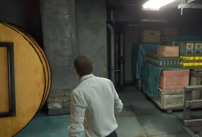 Предыдущие тупики расчистились, и вы попадете в заднюю часть подвала. Сэм говорит вам, что вентиляция – это ключ, и вы должны подняться туда. И снова винная бочка отмечает путь. Он стоит у стены. Потяните его вверх до уровня под вентиляцией.
