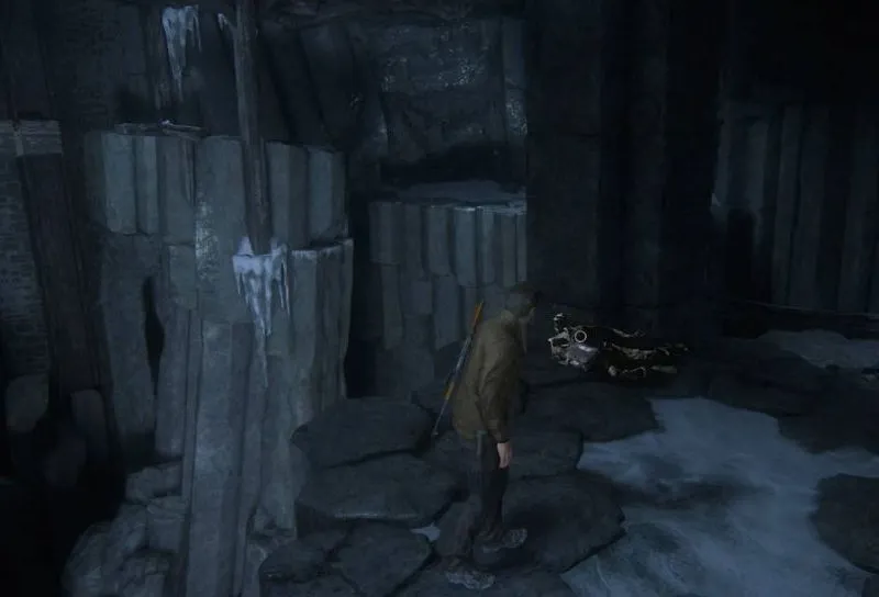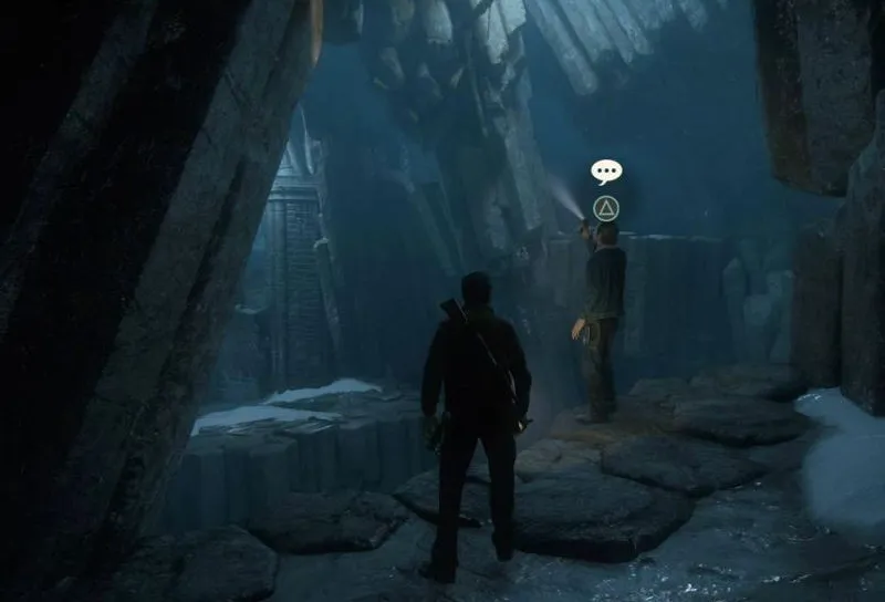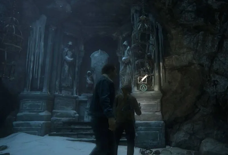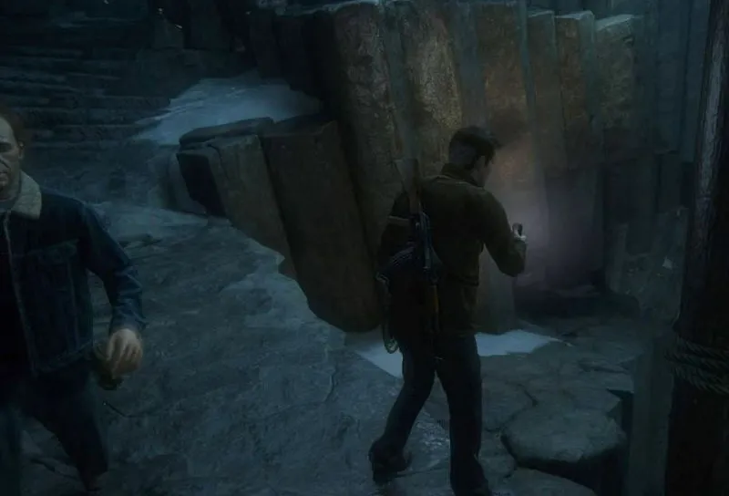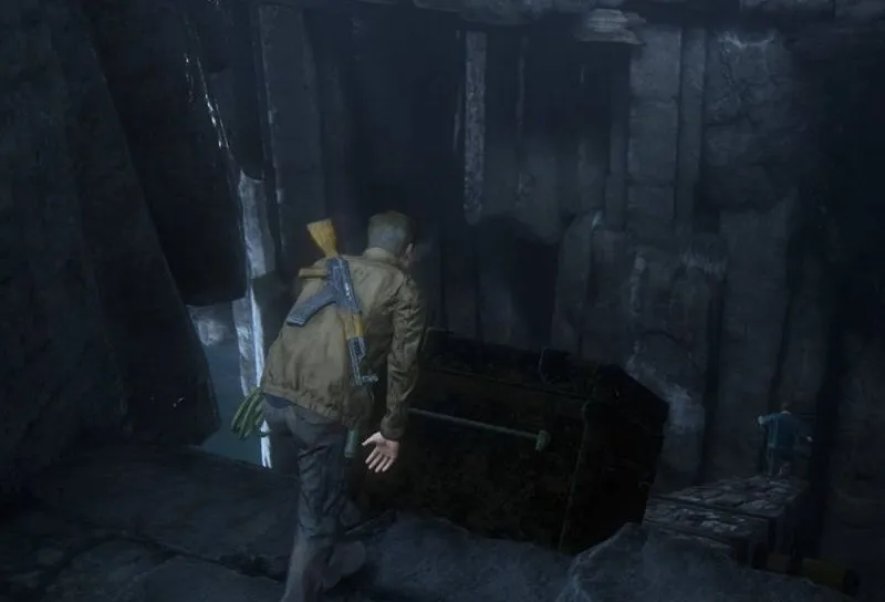 Справа от него вы можете помочь Сэму подняться по лестнице. Сделайте это, и он задвинет ящик для вас. Возьмите его и подтолкните к стене, где вы увидите поручень. Поднимитесь и следуйте за своим братом по скалам в пещеру.