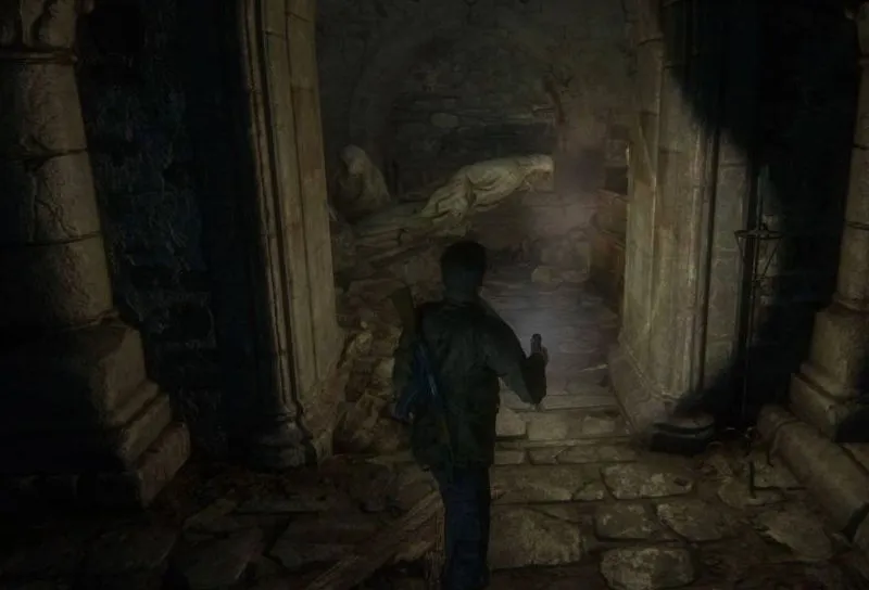 Теперь вы окажетесь в катакомбе. В левой части комнаты есть проход, он находится немного выше. Проберитесь через него и вы придете к водопаду. Слева вы найдете возможность для скалолазания. Поднимитесь вверх и подойдите к стене. Там вы сможете подслушивать своих врагов через стену.