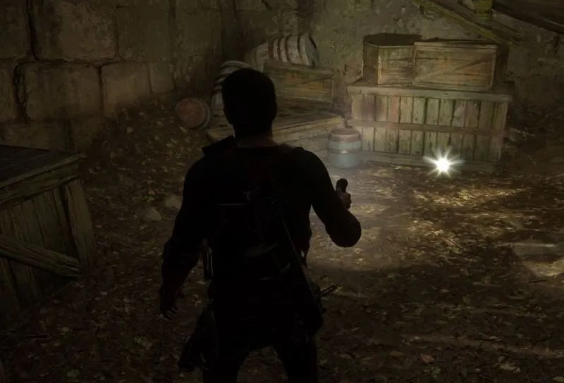Там, под обломками, рядом с ящиками, вы найдете последнее сокровище в этой секции – кувшин. Найдя его, вернитесь к брату Сэму и поднимитесь в остатки здания. Вы подойдете к окну, которое находится слишком высоко для вас.