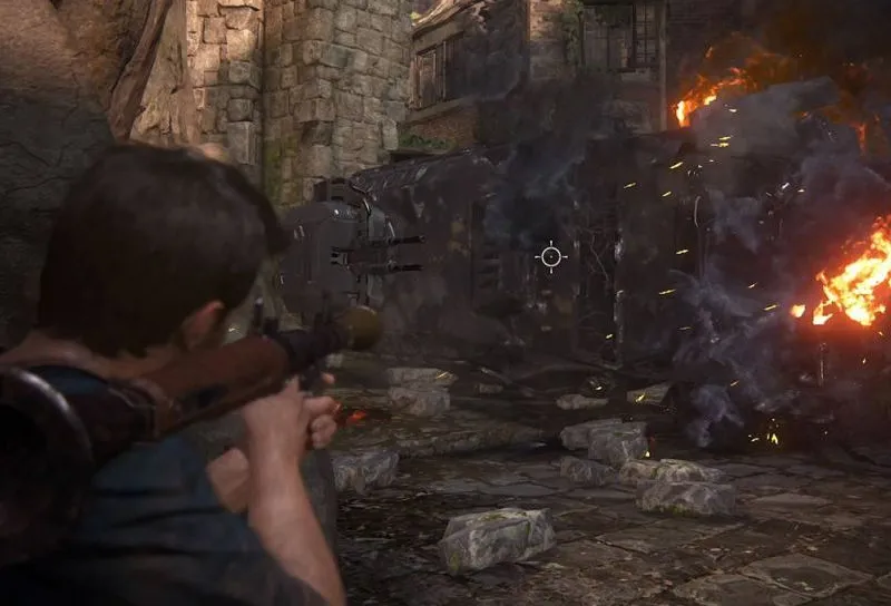 Бегите через город и следите за столбами, на которых можно раскачиваться, точками крепления веревки и возможностями для лазания. Салливан поможет вам спастись и откроет огонь по внедорожнику. Возьмите базуку во дворе и выстрелите из нее по внедорожнику.