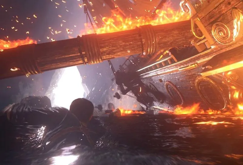 Плывите к кораблю и сразу же забирайтесь наверх через отверстие, вырванное в корабле взрывом. Выбегите на палубу и перепрыгните через отверстие обратно на корабль. Поздравляю! Вы нашли сокровище Эйвери. Пройдите через следующую дверь и вы найдете Рафа.