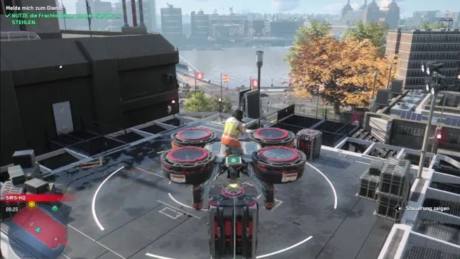 Если Вы справились с задачей, вернитесь в бар "Удача Эрла". Вы автоматически поменяете роль и станете строителем. Направляйтесь к Вестминстерскому собору, а когда доберетесь до места назначения, окликните появившийся над вами грузовой дрон. Вам необходимо захватить его и, пролетев как можно ниже, забраться на него. Снова захватите беспилотник, и он доставит вас на крышу отмеченного значком главного здания SIRS.