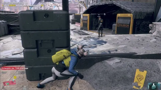 Первый ретранслятор данных находится совсем рядом с лапой паука-бота, поэтому пересекайте подземный участок в западном направлении. Следите за двумя желто-черными столбами, обозначенными 4 и 5: Между ними находится охранник, которого вы отвлечете и уничтожите.