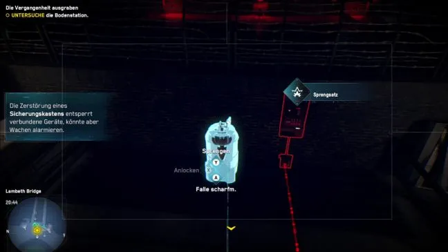 Поэтому взломайте камеру, висящую внутри комнаты, и взорвите канистру, стоящую рядом с ящиком. После этого вы можете войти в комнату и взаимодействовать с отмеченным концентратором ctOS. Вскоре после этого вы заглянете в небольшой бункер, где вам нужно будет внимательно рассмотреть две вещи: Прямо перед вами находится планшет на темно-сером ящике, а в левом углу - настольный компьютер. Чтобы завершить миссию, необходимо последовательно взломать оба предмета.