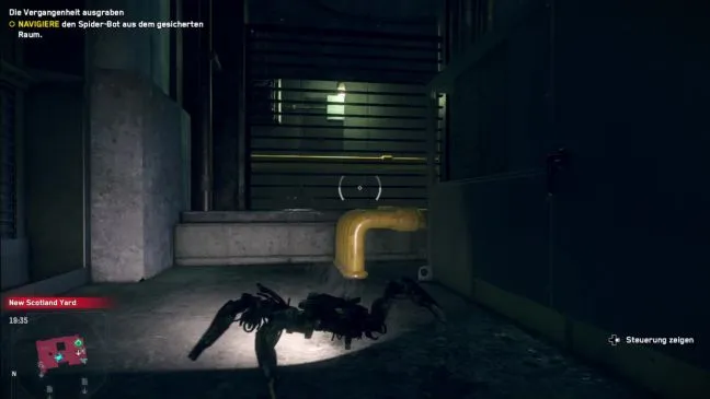 Захватите бота-паука и покиньте Скотланд-Ярд, отправившись в обратный путь. Но это еще не значит, что миссия закончена, поскольку теперь вам предстоит посетить наземную станцию в Вестминстере. Указатель места назначения приведет вас на мост, где вы выйдете из машины и отыщете на краю лестницу, по которой можно спуститься вниз. Вы сразу же окажетесь перед запертой дверью, за которой, к сожалению, находится соответствующий блок предохранителей. Однако на этот раз Вы получите надежную подсказку, как действовать дальше: Чтобы отпереть дверь, можно уничтожить такую коробку.