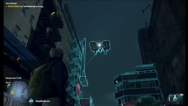 В последней основной миссии вы по очереди управляете двумя персонажами. Прежде всего, вам предстоит отправиться на экстренный брифинг с текущим членом отряда, для чего Бэгли назначил предварительное место встречи в ресторане FLVR. Точнее, на балконе, куда можно попасть только с помощью грузового дрона.