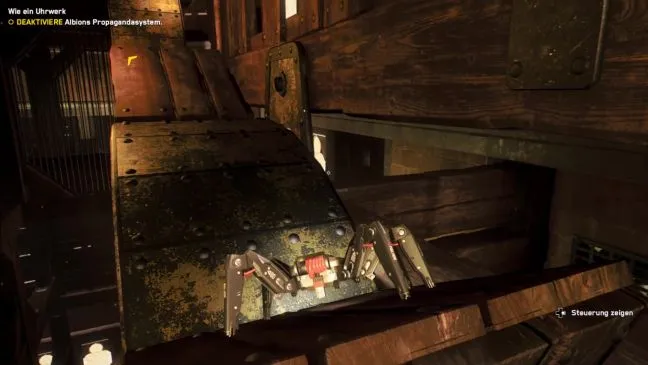 Оказавшись внутри здания, вы увидите прямо перед собой док с паукообразным ботом. Как кстати: Бэгли уже предлагал забраться на башню с помощью паука-бота. Вызовите его и проползите по узкой вентиляционной шахте справа от него.