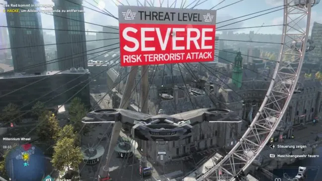 Добравшись до консоли и воспользовавшись ею, вы получаете в свое распоряжение элитный дрон AT. С его помощью вы должны уничтожить несколько помеченных станций ICE и, наконец, взломать пропаганду Альбиона на колесе обозрения. Однако сопротивление будет нарастать, поэтому не стоит слишком самоуверенничать. Иными словами, не позднее чем после третьей уничтоженной станции ICE займитесь уничтожением всех врагов на земле и дронов в воздухе. Для этого воздержитесь от использования ракет, которые Вам понадобятся гораздо быстрее.
