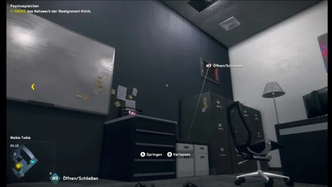 Следующий пункт назначения - клуб Walkie-Talkie Club, откуда вы спринтерским бегом доберетесь прямо до отмеченного подъемника. Оказавшись наверху, вы должны взломать сеть клиники коррекции. Помещение для этого недоступно, поэтому придется захватить паука-бота. Соответствующий док вы найдете в северо-восточном углу комнаты, рядом с цветочными горшками.