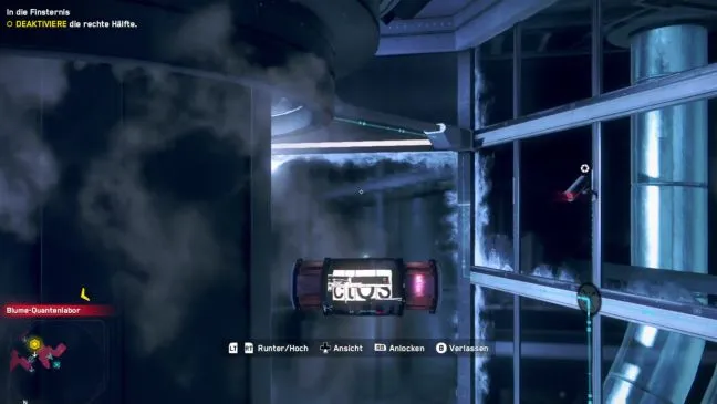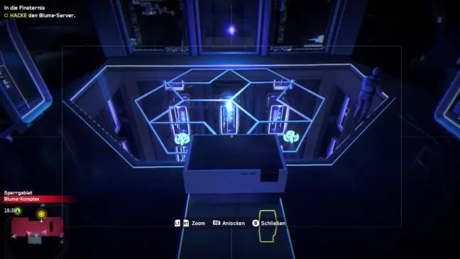 Вход в квантовую лабораторию находится в северной части комплекса Blume, где Вы столкнетесь с большой массивной входной дверью. Открыть ее можно только после взлома соответствующего терминала безопасности. Вы обнаружите его, взломав одну из камер во внутреннем дворе: он висит на стене, и добраться до него можно по нескольким лестницам - но только если вы уже находитесь за дверью!