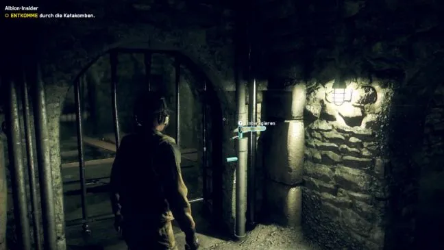 Попав на самый нижний этаж, вы не сможете просто пройти к главному входу. Вместо этого нужно идти по отмеченной лестнице, ведущей вниз, в катакомбы. Там тоже есть охранник, но его можно легко избежать благодаря проходу.