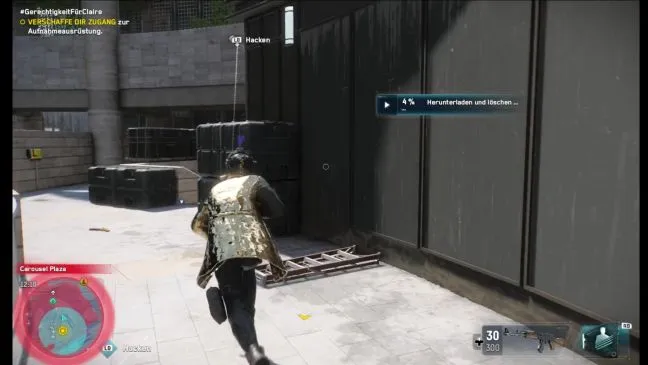 Что это такое? Вы должны получить доступ к записывающему оборудованию, расположенному на площади Карусель. Это большая запретная зона, центр которой представляет собой круглую площадь. Оборудование расположено на широком крыльце, до которого можно легко добраться с помощью грузового дрона, а затем достаточно уничтожить одного охранника на месте.