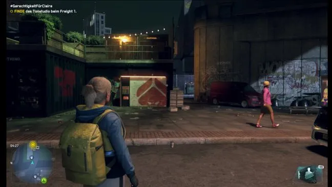 Вам предстоит отправиться на поиски репортера Клэр, для чего необходимо найти студию звукозаписи по адресу Freight 1. Открыв обзорную карту, вы увидите, что пункт назначения находится прямо у точки быстрого перемещения. Воспользуйтесь этим, выйдите из станции метро и пройдите налево мимо больших экранов.
