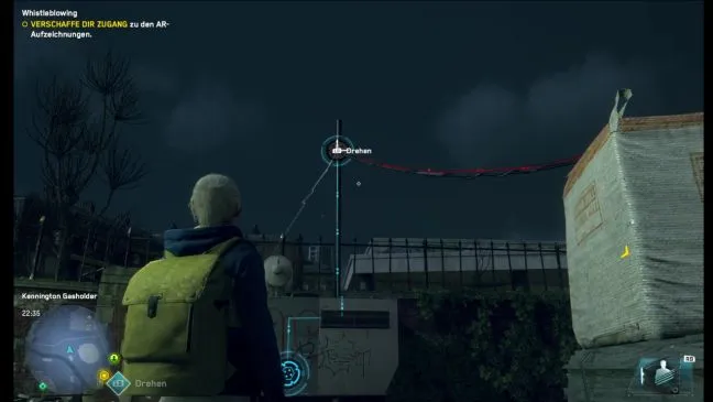 Между ними находятся два Т-образных элемента, кончики которых должны быть направлены вверх. После этого можно разблокировать дверь и открыть ее. Вы сразу же получаете доступ к AR-записи и возвращаетесь к месту встречи, чтобы проследить последние шаги вашей собеседницы. Согласно этому, на нее напали и увезли на автомобиле, за которым вы также следуете на автомобиле.