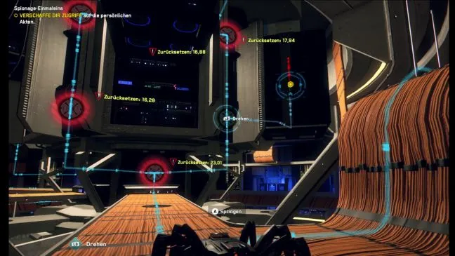 Как только вы заглянете в штаб-квартиру через камеру, вы должны увидеть док для паукообразных и, соответственно, захватить паукообразного. С ним пройдите прямо к вентиляционной решетке и пройдите через нее. Вы приземлитесь в круглой комнате и увидите над собой сервер, для доступа к которому необходимо пройти по сетевому мосту.