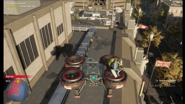 Возьмите грузовой дрон, заберитесь на него и перелетите с ним на крышу. Она охраняется несколькими солдатами Альбиона и штурмовым дроном. Однако сначала можно безопасно спуститься на возвышенность и укрыться там.