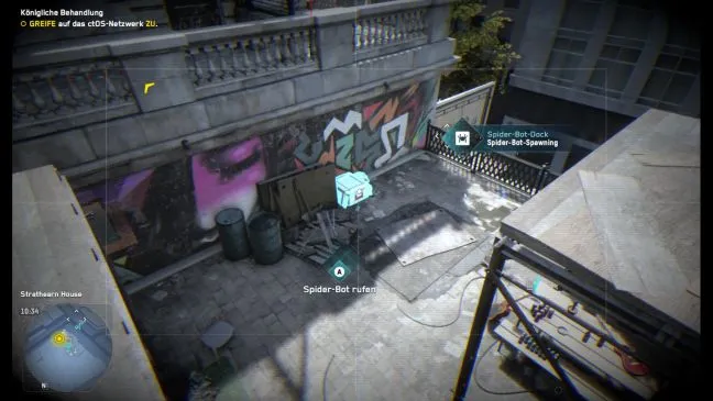 Третий пункт назначения - дом Стратерн на юге города Вестминстер, который находится всего в нескольких кварталах от дома Ваксби. И снова ящик ctOS находится на самом верху и, на первый взгляд, на недосягаемой высоте, но, к счастью, на этот раз в вашем распоряжении есть док Spider-Bot.
