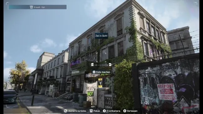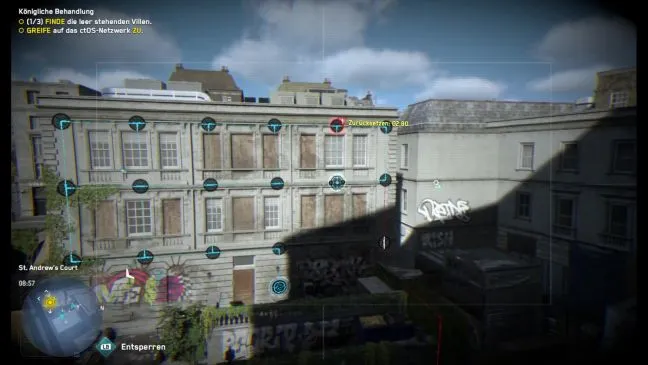 С ключом Вы можете войти в широкий боковой переулок рядом со зданием и сначала расправиться с охранником, а затем подняться по контейнеру к трубе. Наверху вы застанете врасплох еще одного противника и встанете перед деревянной стеной. Если вы не хотите создавать лишнего шума, взломайте камеру, висящую за стеной, и взорвите батарейный блок на другой стороне. Затем нужно перелезть налево по другой трубе на террасу и расправиться с третьим врагом, прежде чем получить доступ к сети ctOS.